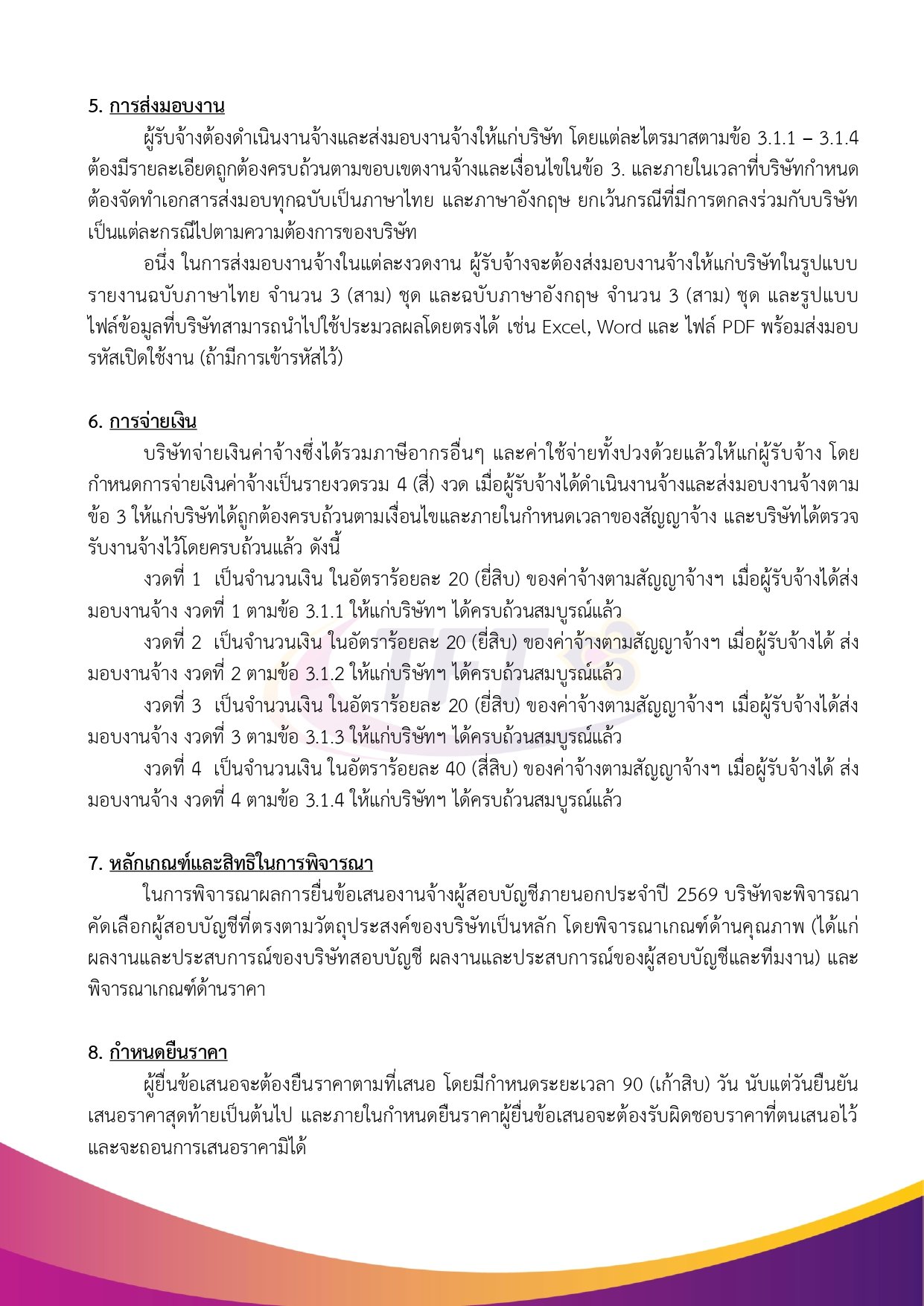 - งวดที่ 4 จำนวน 40% ของค่าจ้างตามสัญญา