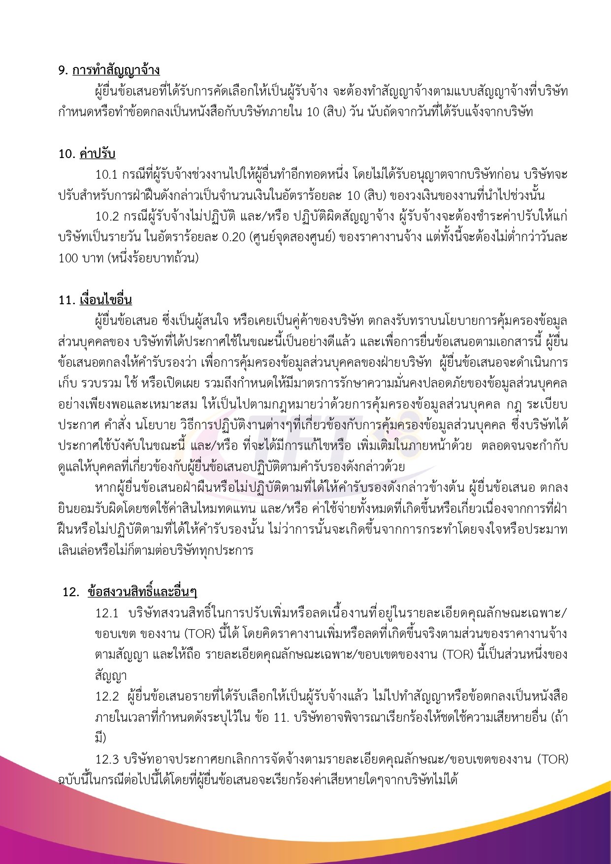 - ไม่มีลักษณะต้องห้ามตามที่บริษัทกำหนด และไม่ขัดต่อการแข่งขันอย่างเป็นธรรม